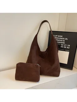 Сумка мешок под замшу с косметичкой коричневая