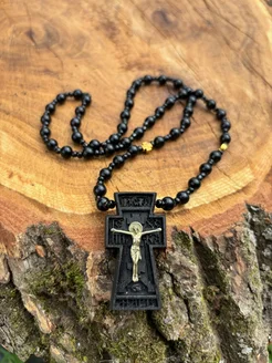 Крест Нательный Деревянный На Бусах Архангел Михаил