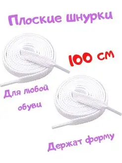 Шнурки для обуви кроссовок, кедов, плоские, белые, 100 см