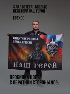 Флаг Ветеран боевых действий Наш Герой Зеркальный