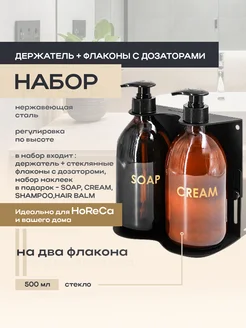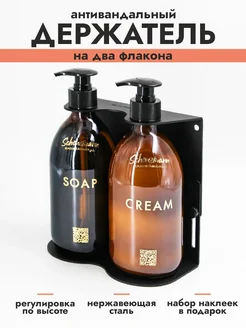 Антивандальный держатель на 2 флакона и 2 флакона с надписью