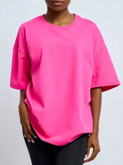 Футболка оверсайз длинная однотонная хлопок