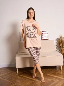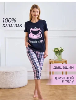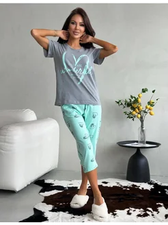 Пижама домашняя комплект с бриджами и футболкой