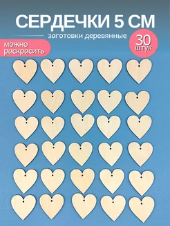 Деревянные заготовки для рукоделия, творчества Сердечки 5 см
