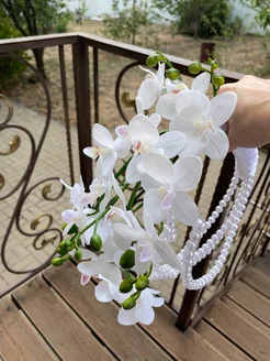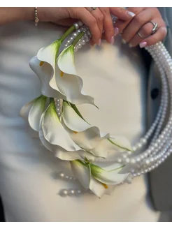 Свадебный букет невесты жемчуг и каллы 5 штук