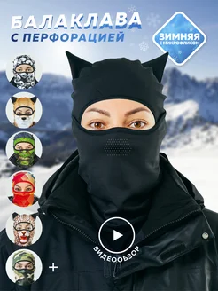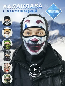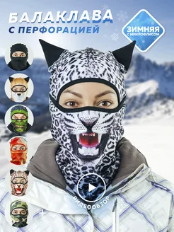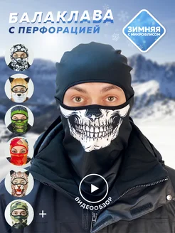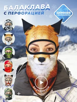 Балаклава зимняя горнолыжная на флисе с принтом под шлем