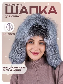 Шапка ушанка зимняя, натуральный мех чернобурки