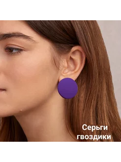 Серьги крупные гвоздики круглые квадратные пусеты бижутерные