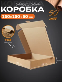 Крафтовая коробка самосборная упаковка с замком 25х25х5 50шт