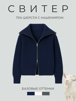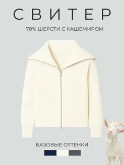 Свитер на молнии укороченный вязаный оверсайз теплый