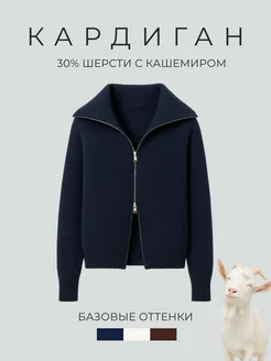 Кардиган на молнии вязаный теплый укороченный
