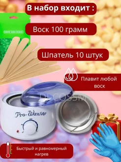 Воскоплав для депиляции+100 гр воск+10 шпателей+1 перчатки