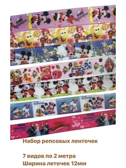 Лента для рукоделия репсовая с рисунком принтом, ширина 25мм