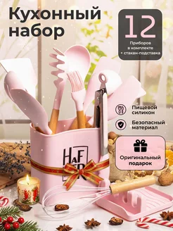 Набор кухонных принадлежностей из силикона и бамбука