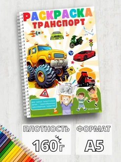 Книжка раскраска автомобили, трактора, бульдозер плотная а5