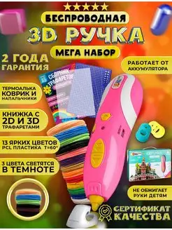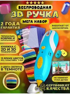 3д ручка беспроводная с пластиком PCL и трафаретами 3D