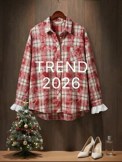Рубашка в клетку оверсайз с леопардовыми воланами