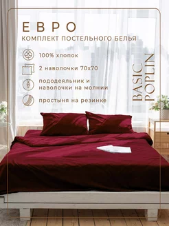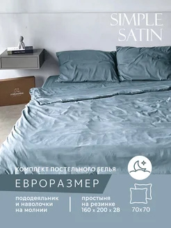 Постельное белье Евро на резинке, наволочки 70х70, сатин