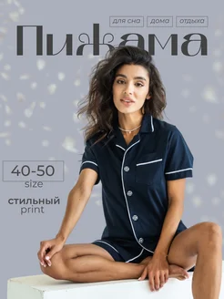 Пижама с шортами и рубашкой, домашний костюм хлопок