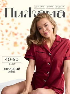 Пижама с шортами и рубашкой, домашний костюм