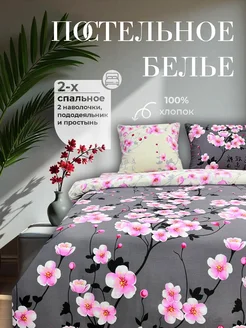 Нежное постельное бельё 2 с евро простынёй из поплина