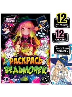 Раскраска по образцу с наклейками "Раскрась ведьмочек"