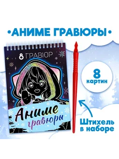 Книга детская Аниме гравюры, 8 гравюр, в наборе штихель