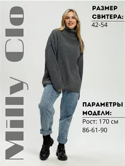 Свитер оверсайз удлиненный вязаный с горлом