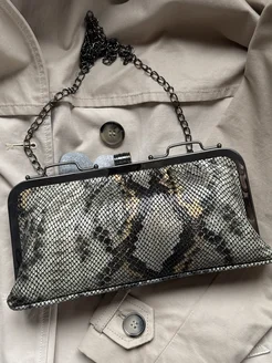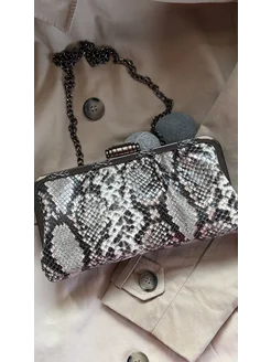 Сумка-клатч со змеиным принтом на фермуаре, 24*3*11