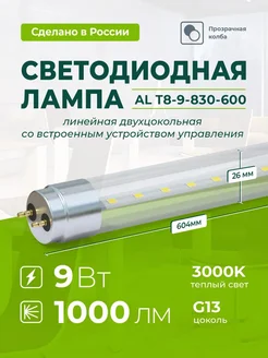 Светодиодная лампа (4 шт.) 9Вт 60 см 3000К прозрачная