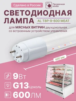 Лампа для мясных витрин 1 шт 9 Вт 60 см G13 розовый