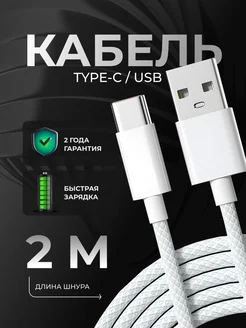 Кабель USB Type-C для зарядки Андроид 2 метра белый