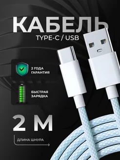 Кабель USB Type-C для зарядки Android 2 метра голубой