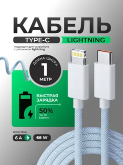 Шнур для iphone кабель type-c lightning 1 метр голубой