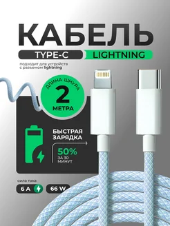 Кабель Type C - Lightning для iPhone 2 метра голубой