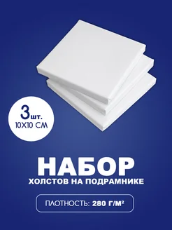 Холст для рисования грунтованный 10х10 см набор 3 шт