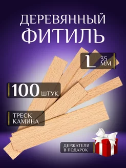 Фитиль деревянный Огонек L (100 шт) с держателями
