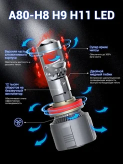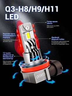 LED фары Q3 H11,Оригинальные светодиодные фары,2 шт