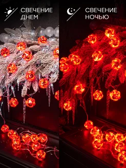 Гирлянда на ёлку с зелеными шариками от сети 5 метров