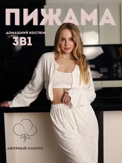 Пижама женская со штанами хлопок домашний костюм
