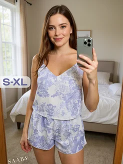 Пижама с шортами и майкой шелковая комплект домашний