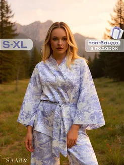 Пижама со штанами шелковая кимоно комплект домашний атласный