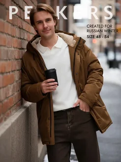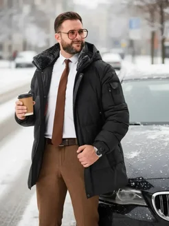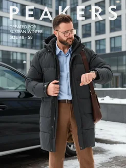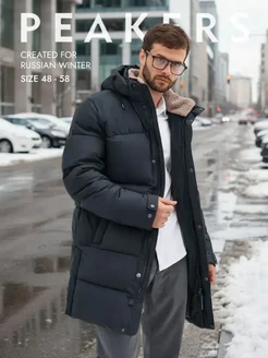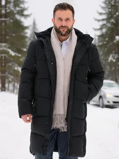 Пуховик зимний с капюшоном длинный с меховым воротником