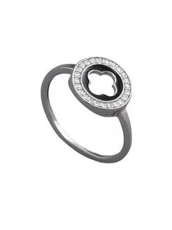 Кольцо клевер с фианитами и эмалью серебро 925