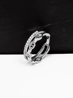 Кольцо серебряное двойное с фианитами, 925