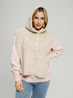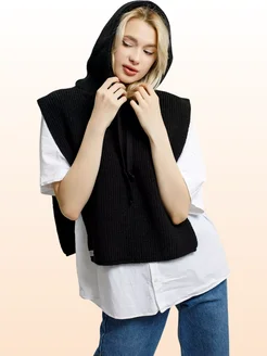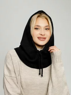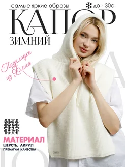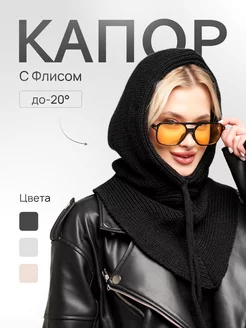 Капор зимний вязаный с капюшоном флисовая подкладка