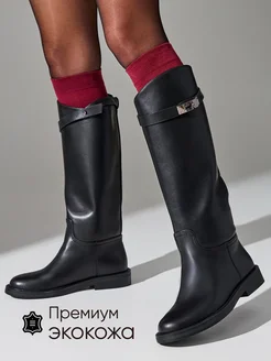 Сапоги черные с ремешком
