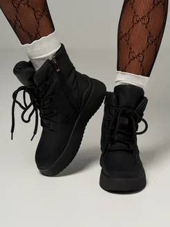 Дутики черные на шнуровке