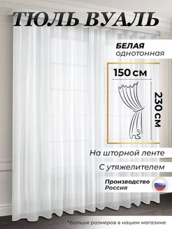Тюль вуаль с утяжелителем 150х230 см белый готовый