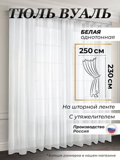 Тюль вуаль с утяжелителем 250х230 см белый готовый